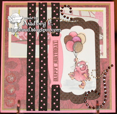For Monster balloons, Nesties used for image, backing and sentiment, bling from Zva Creative, ribbon from Michael’s and sparkly dots from my stash. Hope you have enjoyed these and come play along at