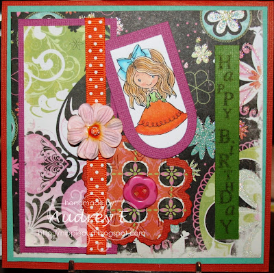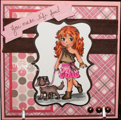 For my creation this week, I have chosen INKY IMPRESSIONS stamp “Angelica's New Puppy” which I stamped with Brilliance ink, colored with Copics and Fiskars gel pens and cut with Lifestyle Crafts dies.  Papers are Bazzill and My Mind’s Eye DP.  Ribbon is from my stash, pearls from Prima, sentiment from Papertrey Ink and cut with Nestie.  Sure hope you like it and will come play along!!