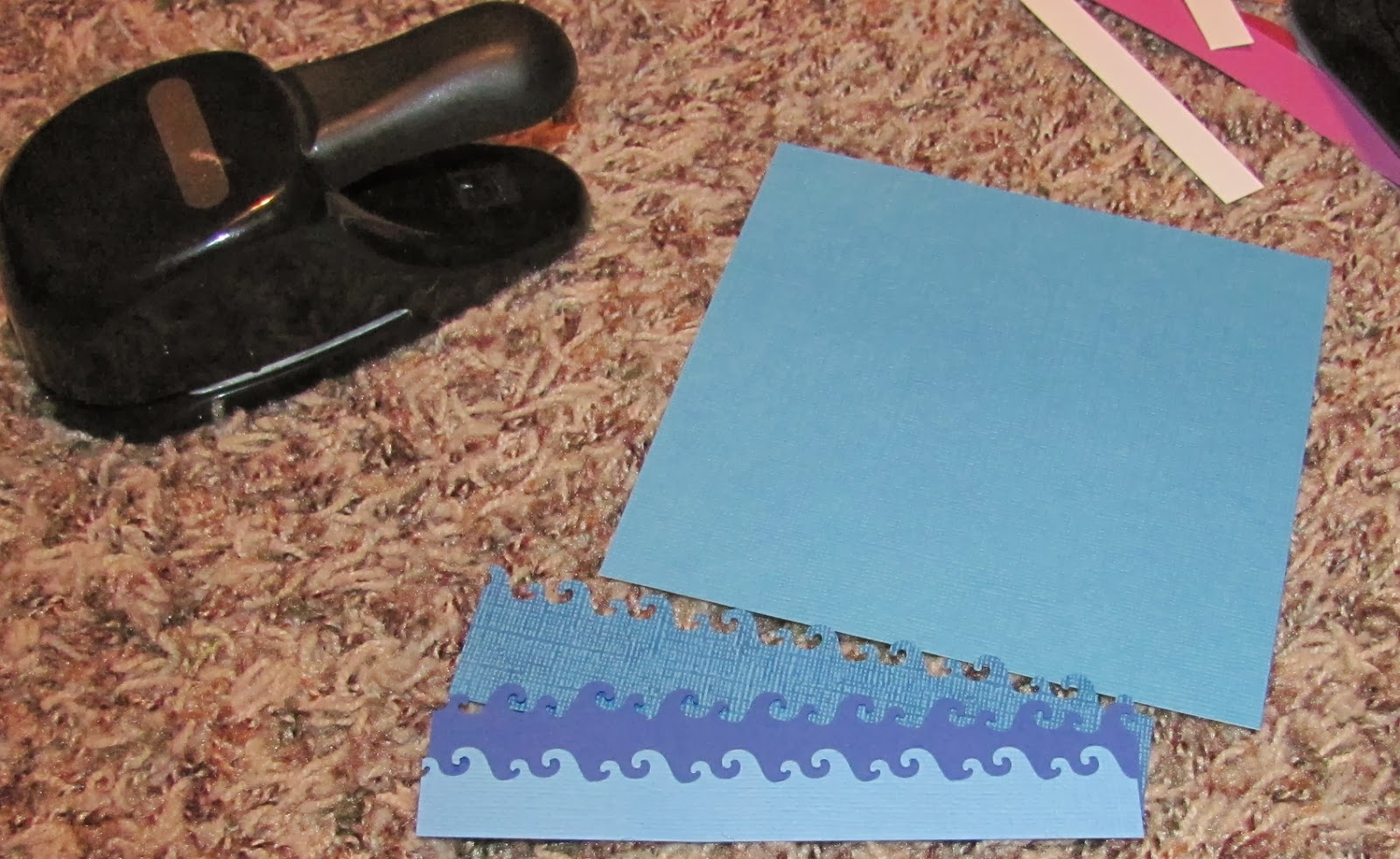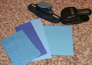First, you need a waves punch (or die cut will work too) and a slot punch. I like to make 3 sets of waves, so I chose 3 different blue papers of varying colors and textures.