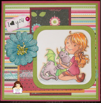 For today’s creation, I have colored "Me and My Dragon" with Copics and cut out with Nestie. I used DP from Bo Bunny and CS from Bazzill. I added a Prima flower and ribbon from Taylored Expressions. My sentiment is also from the CRAFTY SENTIMENTS DESIGNS New Release, it's cut with Nestie and Prima bling added. Sure hope you like it!!