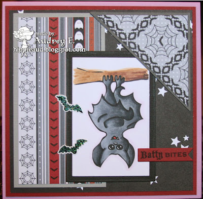 The FREEBIE for the week is Hanging Bat and I have colored it with Copics and cut out with Taylored Expressions dies. I used SU DP and Bazzill CS on my card and added stickers from Recollections. Sentiment is from Taylored Expressions and cut out with Verve die.