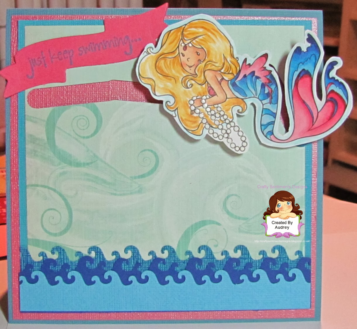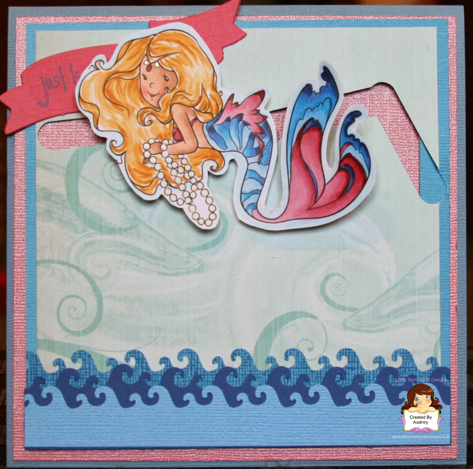 I have one more New Release project for CRAFTY SENTIMENTS DESIGNS to share with you and this one features "Mermaid Pearls," which, like all the New Release images, is AWESOME! I decided to make a slider card with waves for this image so I just want to give a quick tutorial on how I did it.