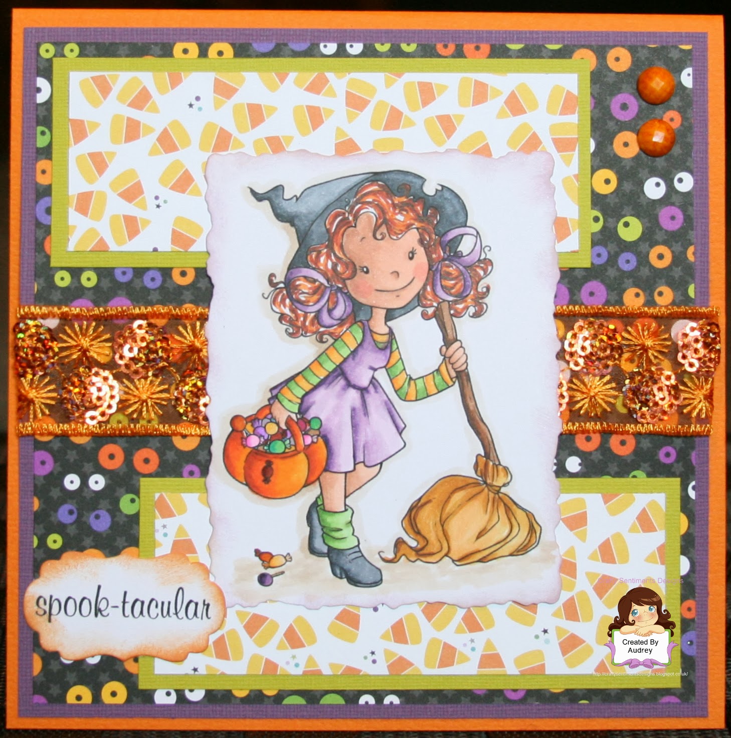 For today’s creation, I have colored "Witches Broom" with Copics and cut out with Nestie. I used more shading out/blending in my coloring for this image and I'm really happy how it turned out:) I used DP from Doodlebug Designs and Bella Blvd. and CS from Bazzill. I added Prima crystals and some fun sparkly, lacey ribbon from Hobby Lobby. My sentiment is also from the CRAFTY SENTIMENTS DESIGNS New Release, it's cut with Nestie and daubed with Memento Ink. Sure hope you like it!!