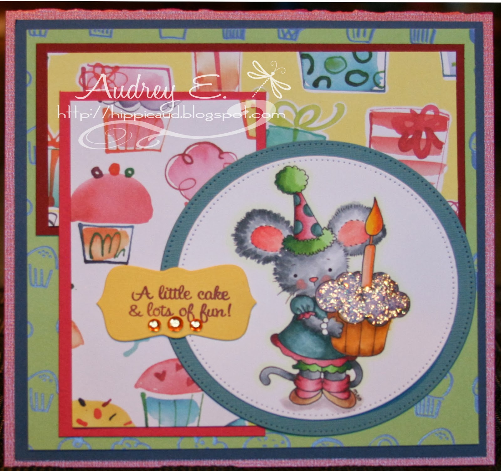 I have colored LUCY'S CUPCAKE with Copics. Once again, I have been playing around with some more daring Copic color combos and techniques, and I hope you can see the results on this card. I added Stickles for the frosting on the cupcake after coloring it with Copics. I have used papers from GCD DP and Bazzill CS. I added bling from Me and My Big Ideas and this wonerderful sentiment from Dorcerela. Image cut out with MFT die. Sentiment cut with Lifestyle Crafts die. Remember, LUCY'S CUPCAKE and all the other of Mabelle's FABULOUS images are available at WHIMSY AND STARS STUDIO SHOP.