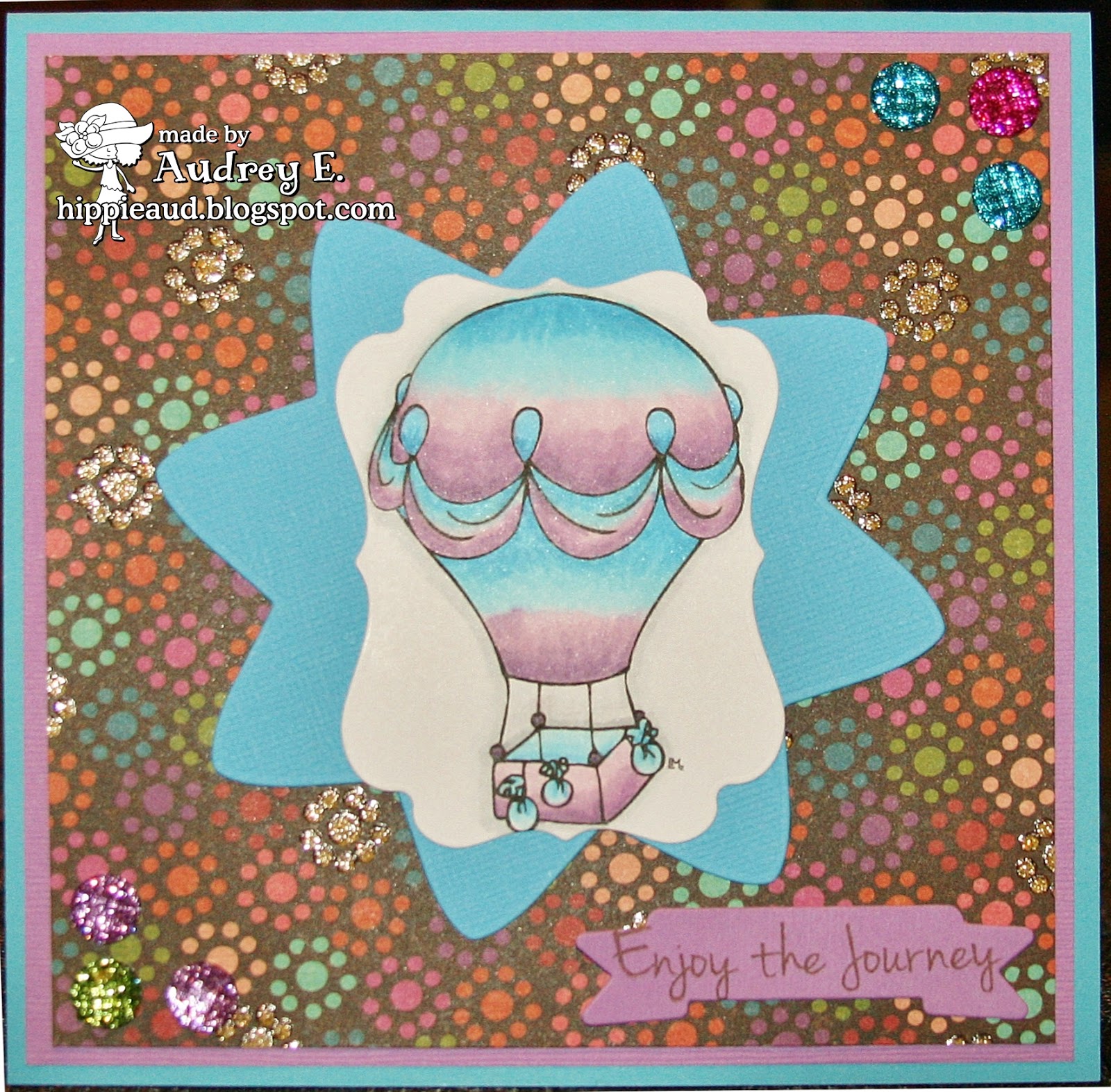 The FREEBIE for the week is Hot Air Balloon and I have colored it with Copics and cut out with Lifestyle Crafts dies. I have been taking Copic classes online with Suzanne Dean amd I used the feathering technique for this image - I hope you like it. I used DCWV DP and Bazzill CS on my card and added bling from The Paper Studio. Sentiment is from A. Jillian Vance Designs and cut out with Verve die.