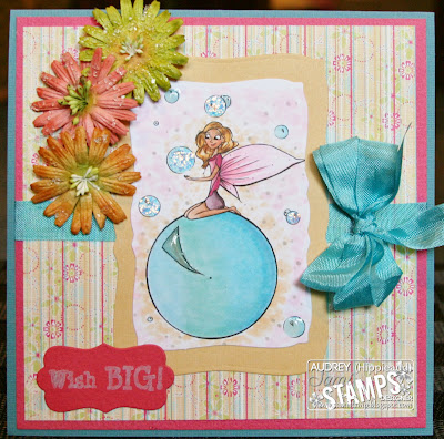 For my card, I have used SAMI STAMPS SHOP image from the New "Bubble Bath Fairy" collection. I have colored this beautiful image with Copics and added some Stickles and JudiKins glaze to some of the bubbles. Image cut with Nestie and I added seam binding from Verve and flowers from Prima. DP is from Fancy Pants Designs and CS from Bazzill. Sentiment is from Cardz TV and cut with Lifestyle Crafts die. Sure hope you like it and thanks for looking:)