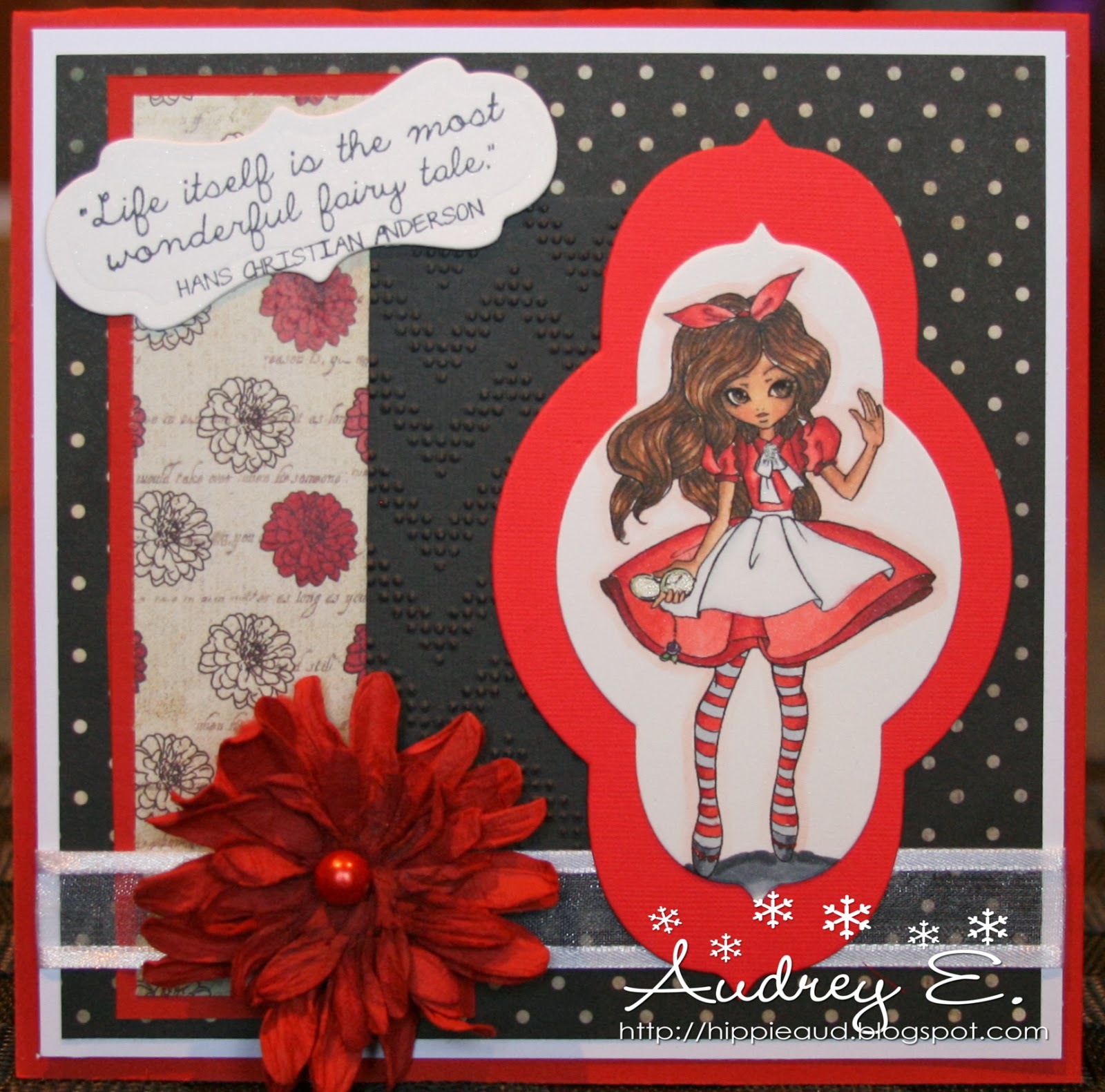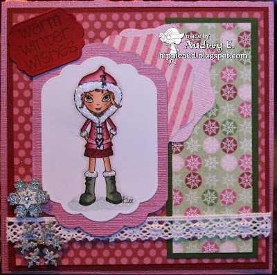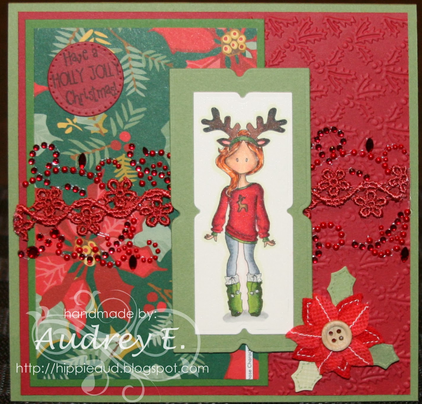 I am presenting the wonderful "Deer Girl" from the new Christmas releases. I have colored this beauty with Copics and Sakura pen. Image and backing cut with Lifestyle Crafts dies. I used Bazzill CS, embossed right side with Sizzix folder. Paper is from free booklet I received with one of my crafting magazines. Lace and pearls from Prima and poinsettia sticker from my stash. Sentiment is from A. Jillian Vance Designs and cut with die from there as well. Sure hope you like it!